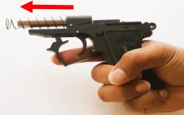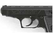 4. The pistol is now ready to fire by pulling the trigger. After firing, the slide will recoil from gas pressure, ejecting the empty case and feed another cartridge into the chamber from the magazine. The pistol is now ready to fire again.