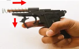 5. When the front of the trigger guard comes out of the frame, press it sideways with your index finger to keep it from springing back up into the frame.